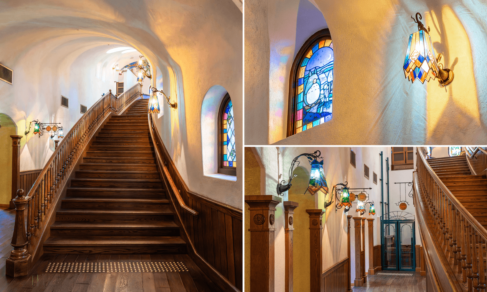 『魔女の宅急便』のキキとジェファーソンが描かれた丸いステンドグラス窓や、「ふしぎ玉」などが忠実に再現されています。