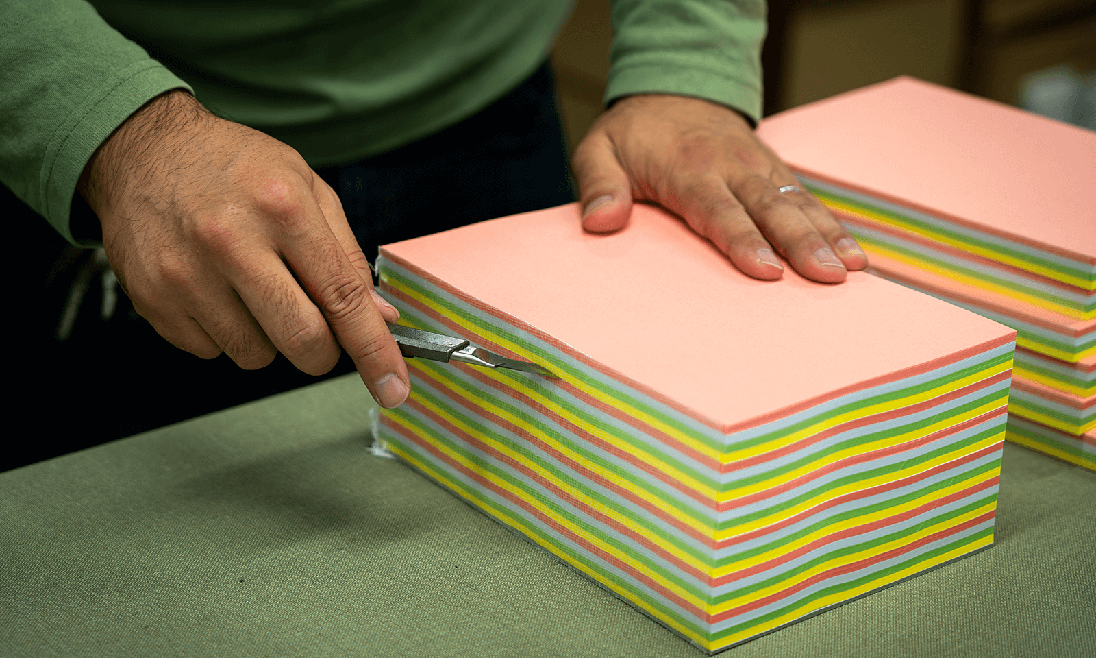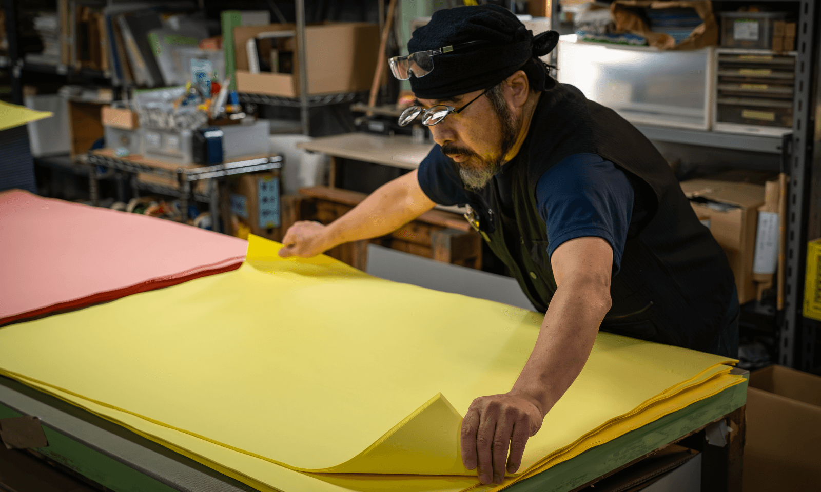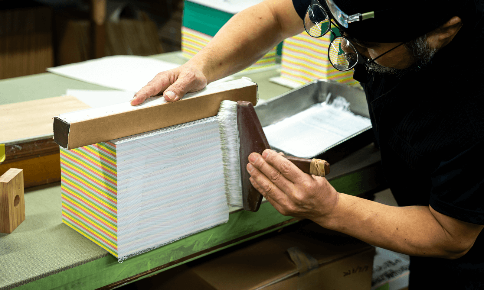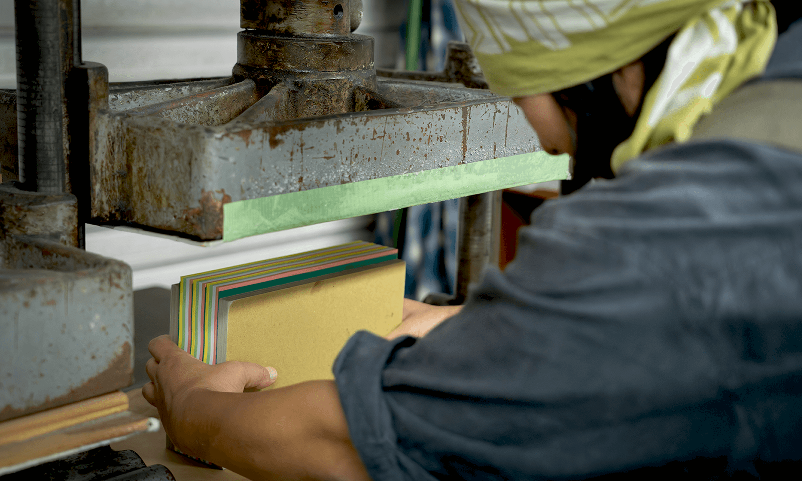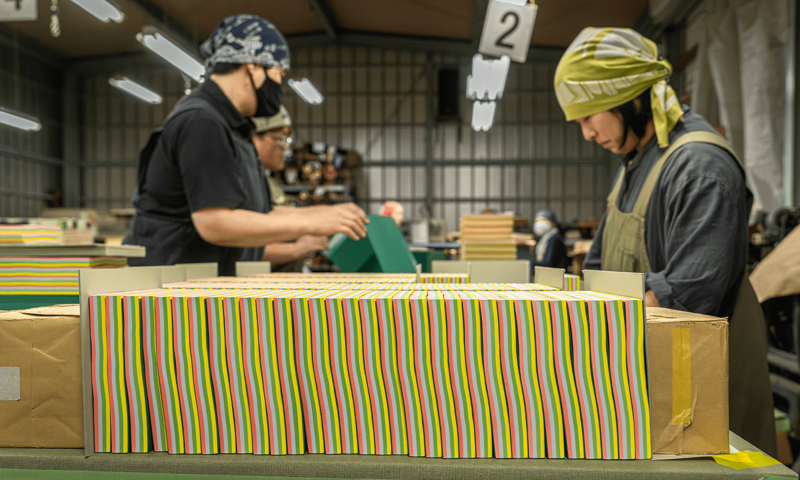 職人たちが真剣な眼差しで一冊一冊丁寧に製本しており、手仕事から生まれるノートは、心のこもった温もりが感じられます。