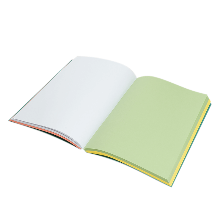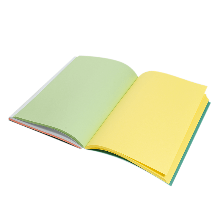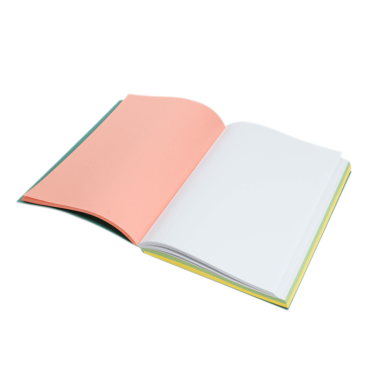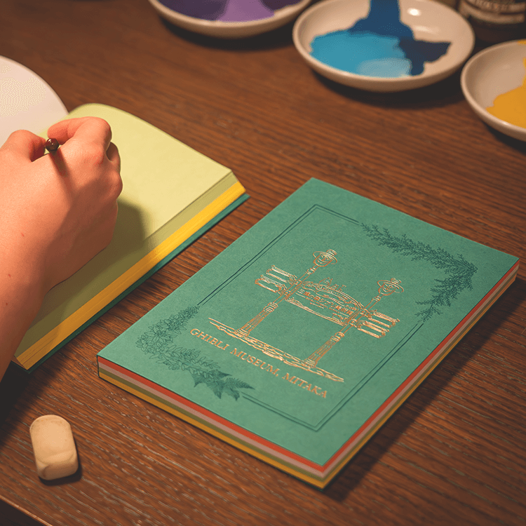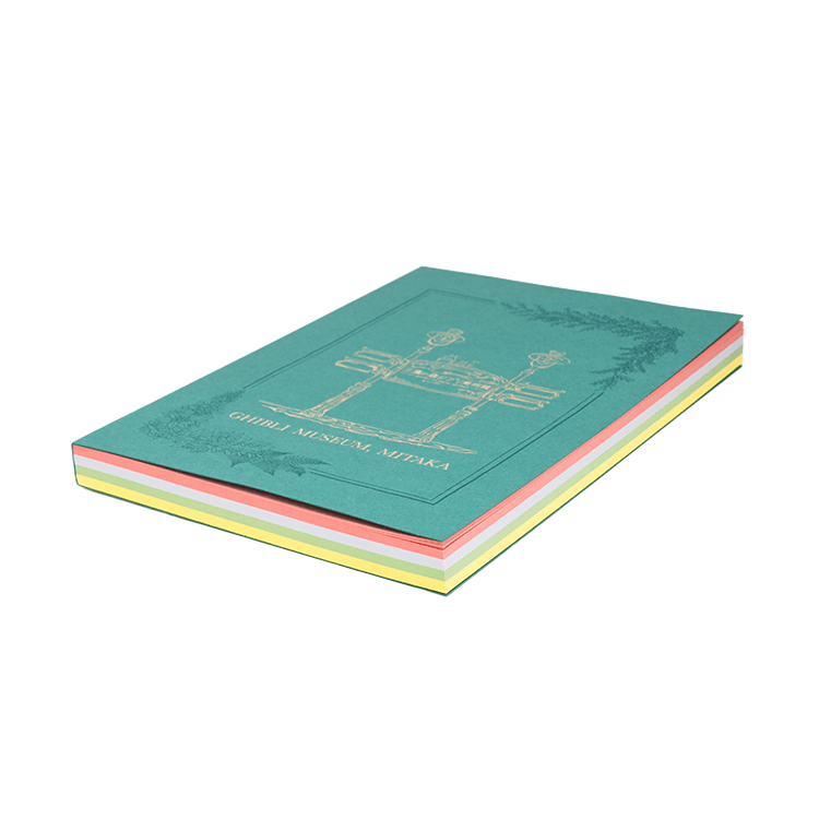 A5判ノートのページの色は、ピンク・白・薄緑・黄と美術館の外壁の色をモチーフにしています。