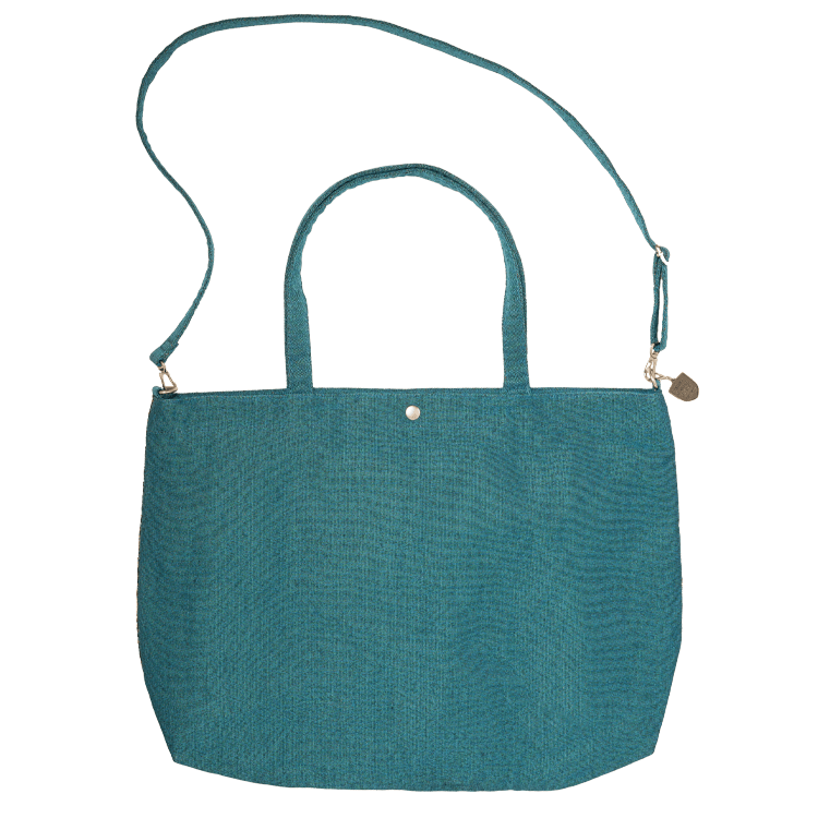 肩にもかけられる長さの持ち手と、斜めがけが出来る取り外し可能なストラップ、便利なチャック付き内ポケット付き。